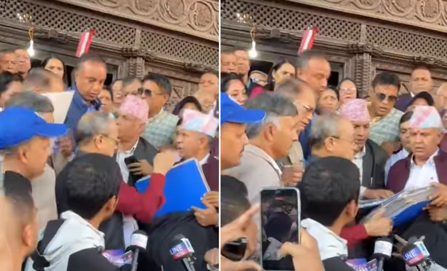 भाेट माग्दै एमालेका नेताहरू रास्वपाको कार्यालयमा