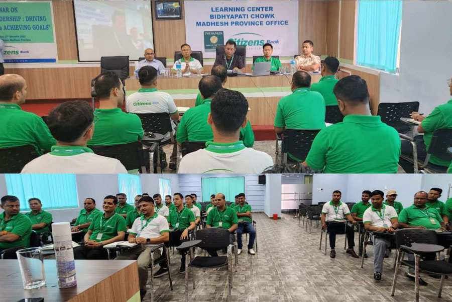 काठमाडौं । सिटिजन्स बैंकले मधेश प्रदेशमा शाखा–प्रबन्धक र अन्य सहकर्मीहरूका लागि मधेश लिडरसिपः ड्राइभिङ पर्फरमेन्स एण्ड अचिभिङ गोल्स शीर्षकमा सेमिनार सम्पन्न गरेको छ । कार्यक्रममा बैंकका प्रमुख कार्यकारी अधिकृत गणेशराज पोखरेल, उप–प्रमुख कार्यकारी अधिकृत तथा वरिष्ठ कार्यकारीहरूको उपस्थिति थियो । सेमिनारमा चालु आर्थिक वर्षका स्थानीय प्राथमिकताहरूमा सहमति जुटाउँदै केन्द्र र प्रदेशबीच सहकार्य सुदृढ गर्ने विषयमा गहिरो छलफल भयो । बैंकले यस्तै कार्यक्रम अन्य प्रदेशमा पनि सञ्चालन गर्ने योजना रहेको जनाएको छ ।