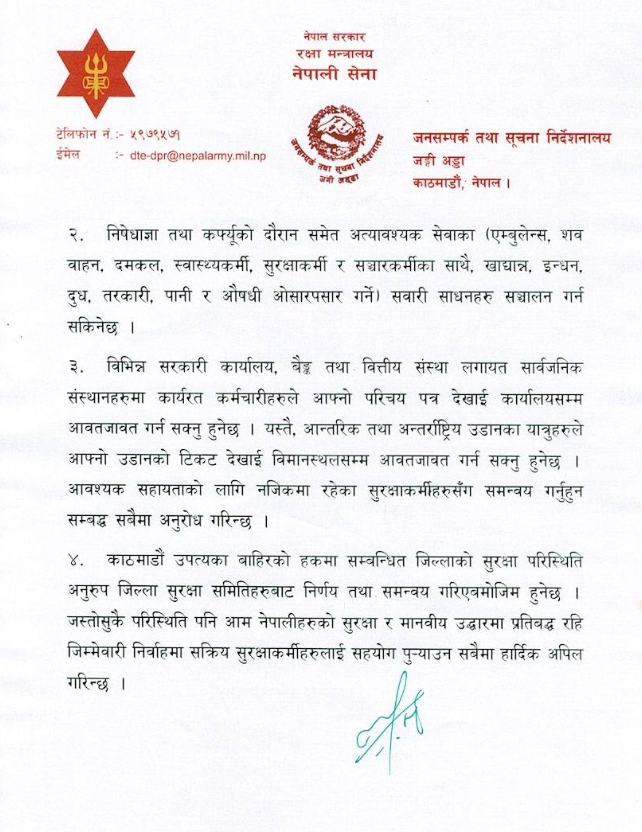 बैंक, वित्तीय संस्था र बीमा कम्पनीका कर्मचारीहरुलाई आवत जावत गर्न दिने नेपाली सेनाको निर्णय