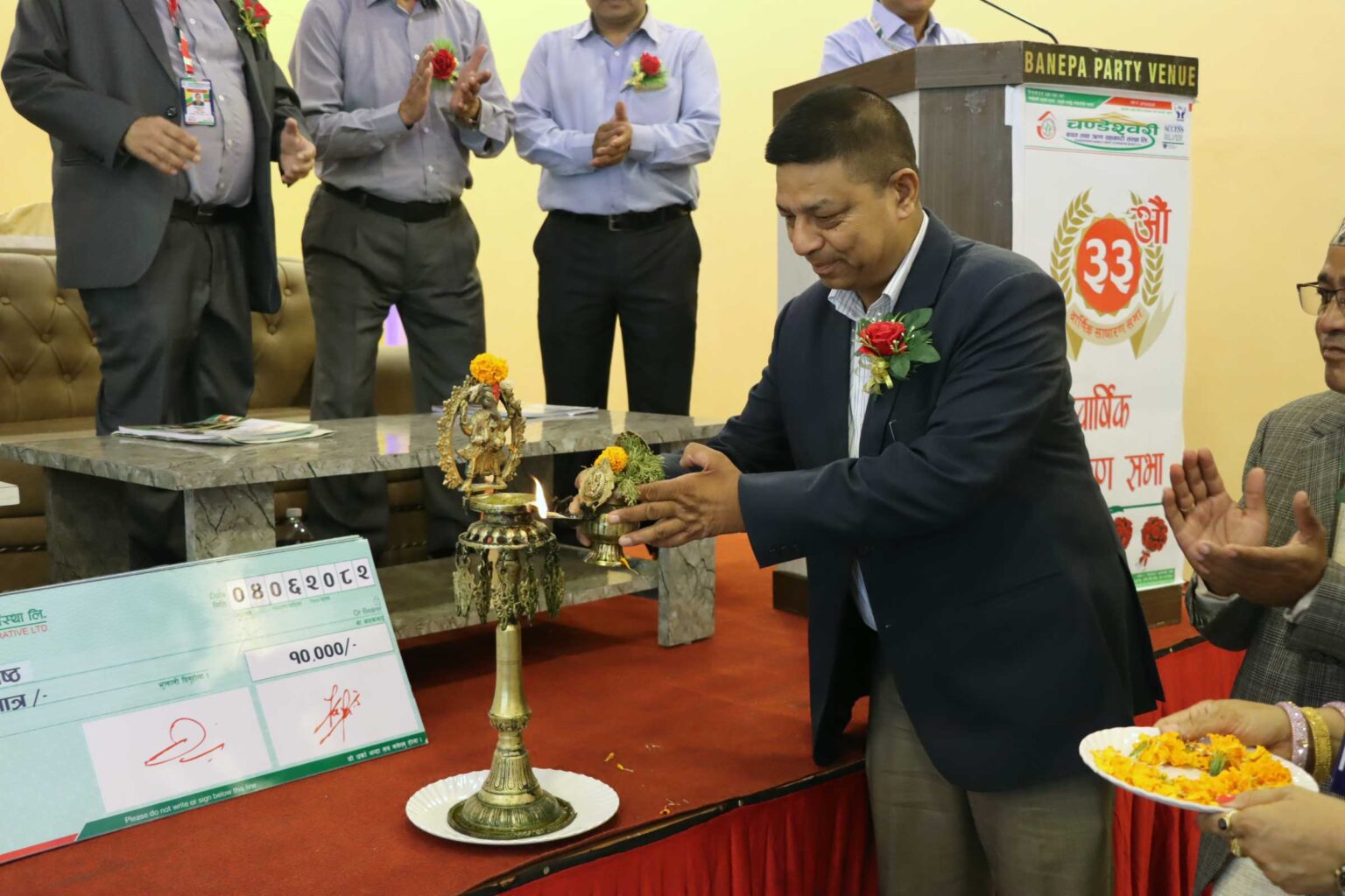 काभ्रे । बनेपामा रहेको चण्डेश्वरी बचत तथा ऋण सहकारी संस्था लि. को ३३ औँ वार्षिक साधारण सभा सम्पन्न भएको छ । संस्थाका अध्यक्ष नविनभक्त बादे श्रेष्ठको अध्यक्षता तथा संस्थाका पुर्व उपाध्यक्ष तथा बागमती प्रदेश सामाजिक बिकास मन्त्रि कन्चनचन्द्र बादेको प्रमुख आतिथ्यतामा सम्पन्न भएको हो । प्रमुख अतिथि कञ्चनचन्द्र बादेले चण्डेश्वरी साकोस समुदायमा आधारीत भई बिगत ३ दशक देखी नै सहकारी मुल्य मान्यता अनुरुप आन्तरीक सुशाशन कायम गरी सदस्यहरुलाई सेवा सुबिधा दिदैँ आएको हुदाँ समुदायमा भर पर्दो सहकारीको रुपमा आफ्नो पहिचान बनाएको बताए । सभामा संस्थाका उपाध्यक्ष रमेशकाजी श्रेष्ठले स्वागत मन्तव्य राखेका थिए । सभामा संस्थाको आर्थिक वर्ष २०८१।०८२ को वार्षिक प्रतिबेदन गत आव २०८१।०८२ को नीति तथा कार्यक्रमको समिक्षा र आ.व. २०८२।०८३ को वार्षिक नीति तथा कार्यक्रम योजना सचिव बुद्धरत्न मानन्धरले प्रस्तुत गरेका थिए ।