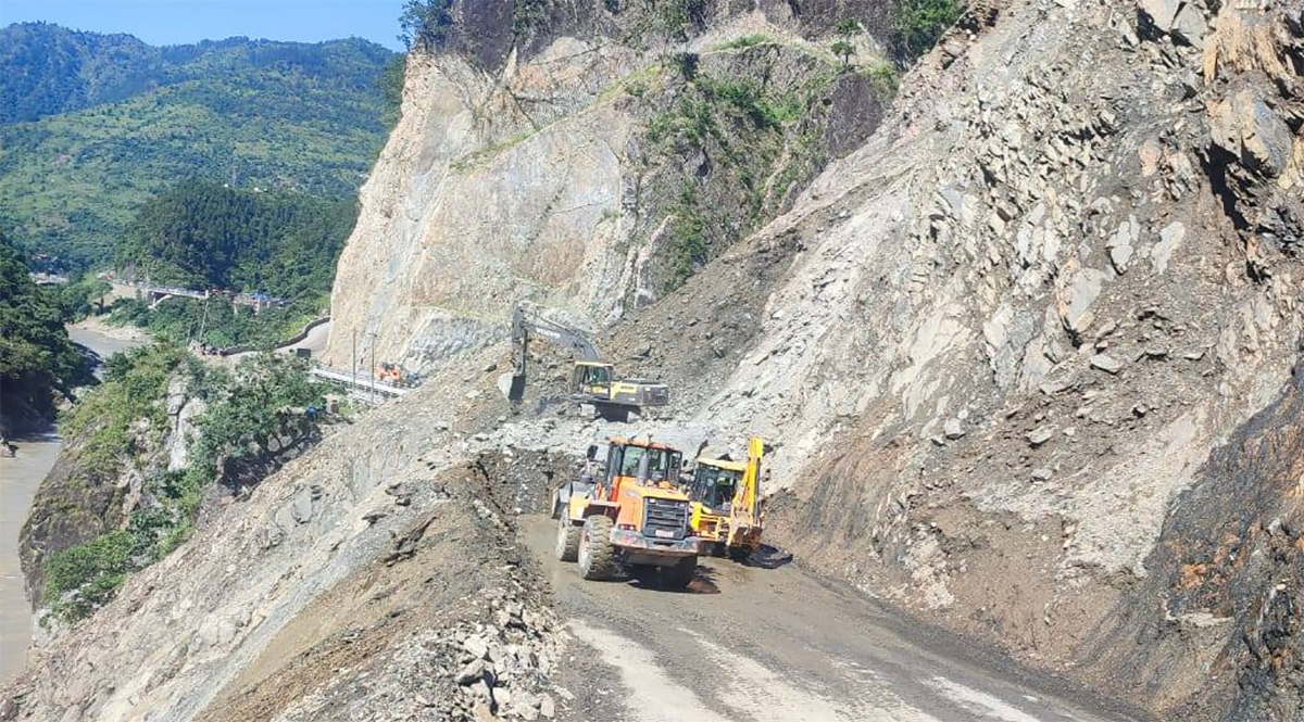 काठमाडौं । मुग्लिन–नारायणगढ सडकखण्डअन्तर्गत चितवनको इच्छाकामना गाउँपालिका–५, तुइन खोला पुलनजिक पहिरो पन्छाउने कार्य जारी छ । हालसम्म करिब ६० प्रतिशत पहिरो पन्छाइएको सडक डिभिजन भरतपुरले जनाएको छ । काम गर्ने क्षेत्र साँघुरो भएकोले गर्दा एकपटकमा दुवैतर्फबाट कुल पाँचवटा उपकरणले मात्रै काम गर्न सक्ने अवस्था रहेको छ, सडक डिभिजनले बिहीबार (असोज ९) दिउँसो पौने ३ बजे जारी गरेको सूचनामा उल्लेख छ । पहिरो पन्छाउने क्रममा नारायणगढ साइडतर्फ ठूलाठूला ढुंगाका कारण केही कठिनाइ भएको सडक डिभिजनले जनाएको छ ।