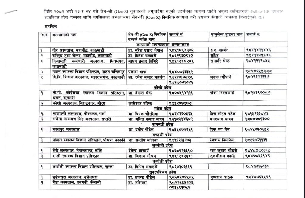 हेर्नुहोस् डेडिकेटेड जेनजी क्लिनिक स्थापना गरिएका अस्पताल र सम्पर्क व्यक्तिको नम्बर–