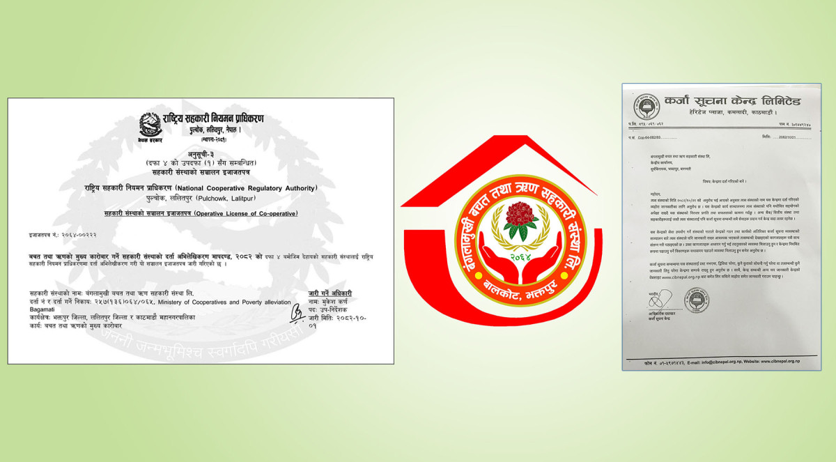 भक्तपुर । सूर्यविनायमक नगरपालिका वडा नं.२ बसिडोलमा मुख्य कार्यालय रहेको बंगलामुखी बचत तथा ऋण सहकारी संस्था राष्ट्रिय सहकारी नियमन प्राधिकरण र कर्जा सूचना केन्द्रमा आवद्ध भएको छ। सहकारी प्राधिरकणबात ‘संस्था सञ्चालन इजाजतपत्र’ लिएपछि कर्जा सूचना केन्द्रमा समेत आवद्ध भई सदस्यता लिएको संस्थाले जनाएको छ । बचत तथा ऋणको मुख्य कारोबार गर्ने सहकारी संस्थाको दर्ता अभिलेखीकरण मापदण्ड २०८२ को दफा ४ बमोजिम संस्था सञ्चालन इजाजतपत्र जारी गरेको इजाजतपत्रमा जनाएको छ । संस्थाको इजाजतपत्र नं. २०६४–००२२२ रहेको छ । बागमती प्रदेश, सहकारी तथा गरिवी निवारण मन्त्रालयमा दर्ता रहेको उक्त संस्थाको कार्यक्षेत्र भक्तपुर र ललितपुर जिल्लाका साथै काठमाडौं महानगरपालिका रहेको छ ।