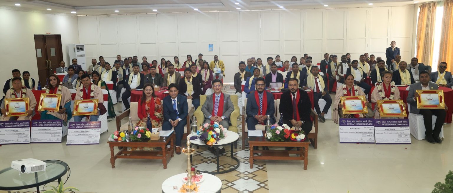 काठमाडौं । नेशनल लाईफ इन्स्योरेन्स कम्पनीले मधेश प्रदेशमा उत्कृष्ट बीमा व्यवसाय गरी सिईओ क्लव सदस्य बिजेता बनेका बीमा अभिकर्ताहरुलाई एक भव्य कार्यक्रमका बीचमा सम्मान कार्यक्रम सम्पन्न गरेको हो । कम्पनीका सिईओ सुरेश खत्रीको उपस्थितिमा जनकपुरस्थित मिथिला यात्रीमा भव्य समारोहका बीचमा सिईओ क्लव बिजेताहरुलाई सम्मान गरिएको हो । आर्थिक वर्ष २०८१।८२ मा तोकिएको बीमाशुल्क संकलन गरी मधेश प्रदेशबाट सिईओ क्लव सदस्य चयन भएका ७७ जना अभिकर्ताहरु सहित विभागीय प्रमुखहरु, प्रदेश प्रमुख एवं मधेश प्रदेश अन्तर्गत रहेका शाखा कार्यालयका शाखा प्रमुखहरुको सहभागितामा कम्पनीले सिईओ क्लब सदस्य बन्न सफल अभिकर्ताहरुलाई सम्मान गरेको हो । प्रमुख कार्यकारी अधिकृत सुरेशप्रसाद खत्रीले सिइओ क्लबका सदस्य हुन सफल अभिकर्ताहरुलाई सदस्यता वितरण तथा सम्मान गरेका थिए । नेशनल रत्न र नेशनल स्टार विजेता अभिकर्ताहरुलाई पनि नेशनल लाईफ लोगो अंकित चाँदीको मेडल, सर्टिफिकेट र खादाबाट सम्मान गरे । सोही कार्यक्रममा मधेश प्रदेशबाट आफ्नो कोड र संजालमा प्रथम द्वित्तिय र तृत्तिय हुन सफल उत्कृष्ट अभिकर्ताहरुलाई विशेष सम्मान तथा पुरस्कृत गरिएको थियो ।