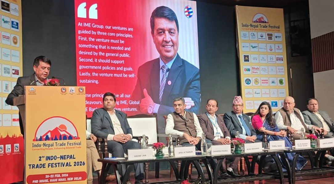 काठमाडौं । नेपाल उद्योग वाणिज्य महासंघका अध्यक्ष चन्द्रप्रसाद ढकालले नेपाल–भारत आर्थिक सहकार्यलाई थप परिणाममुखी बनाउनुपर्नेमा जोड दिएका छन् । भारतको राजधानी नयाँ दिल्लीमा सुरु भएको ‘दोस्रो इन्डो–नेपाल व्यापार महोत्सव २०२६’ लाई शुक्रबार सम्बोधन गर्दै उनले नेपाल–भारतबीच सहज भन्सार प्रक्रिया, मापदण्ड समन्वय, डिजिटल व्यापार प्रणाली सुदृढीकरण तथा साना–मझौला उद्योगलाई वित्तीय पहुँच र प्रविधि हस्तान्तरणमा सहजीकरण गर्नुपर्नेमा जोड दिए । अध्यक्ष ढकालले भारत नेपालको सबैभन्दा ठूलो व्यापार साझेदार र प्रमुख लगानीस्रोत रहेको उल्लेख गर्दै खुला सीमा, सांस्कृतिक निकटता र जनस्तरको सम्बन्धले दुई देशबीचको साझेदारीलाई विशिष्ट बनाएको बताए । उनले विश्व अर्थतन्त्र अनिश्चितता र आपूर्ति शृंखलामा अवरोधको अवस्थामा रहेको उल्लेख गर्दै छिमेकी राष्ट्रबीच सहकार्य अझ सुदृढ गर्नुपर्नेमा जोड दिए । भारतको हालैको केन्द्रीय बजेटले पूर्वाधार, डिजिटल कनेक्टिभिटी, हरित ऊर्जा तथा साना–मझौला उद्योग प्रवद्र्धनमा दिएको प्राथमिकताले नेपालका लागि समेत नयाँ अवसर सिर्जना गर्ने उनको धारणा थियो । अध्यक्ष ढकालले नेपाल जलविद्युतमा समृद्ध रहेको र भारततर्फ विद्युत निर्यात सुरु भइसकेको जानकारी दिँदै उपयुक्त प्रसारण लाइन र नीतिगत स्थायित्व भएमा नेपाल भारतको विश्वासिलो हरित ऊर्जा साझेदार बन्न सक्ने बताए । यस्तै, उनले पर्यटन क्षेत्रमा नेपालले प्राकृतिक सौन्दर्य, साहसिक तथा आध्यात्मिक गन्तव्यहरू प्रस्तुत गरेको उल्लेख गर्दै होटल, रिसोर्ट तथा केबलकार परियोजनामा लगानीको अवसर विस्तार भइरहेको जानकारी पनि गराए । उनले भने, नेपालमा ऊर्जा, पर्यटन औद्योगिक क्षेत्र, विशेष आर्थिक क्षेत्र, सीमापार लजिस्टिक्स, कृषि प्रशोधन, औषधि उद्योग, शिक्षा र स्वास्थ्य सेवामा प्रशस्त सम्भावना रहेको छ । यस्ता क्षेत्रमा लगानी गर्न भारतीय लगानीकर्ताहरुलाई आग्रह गर्छु ।