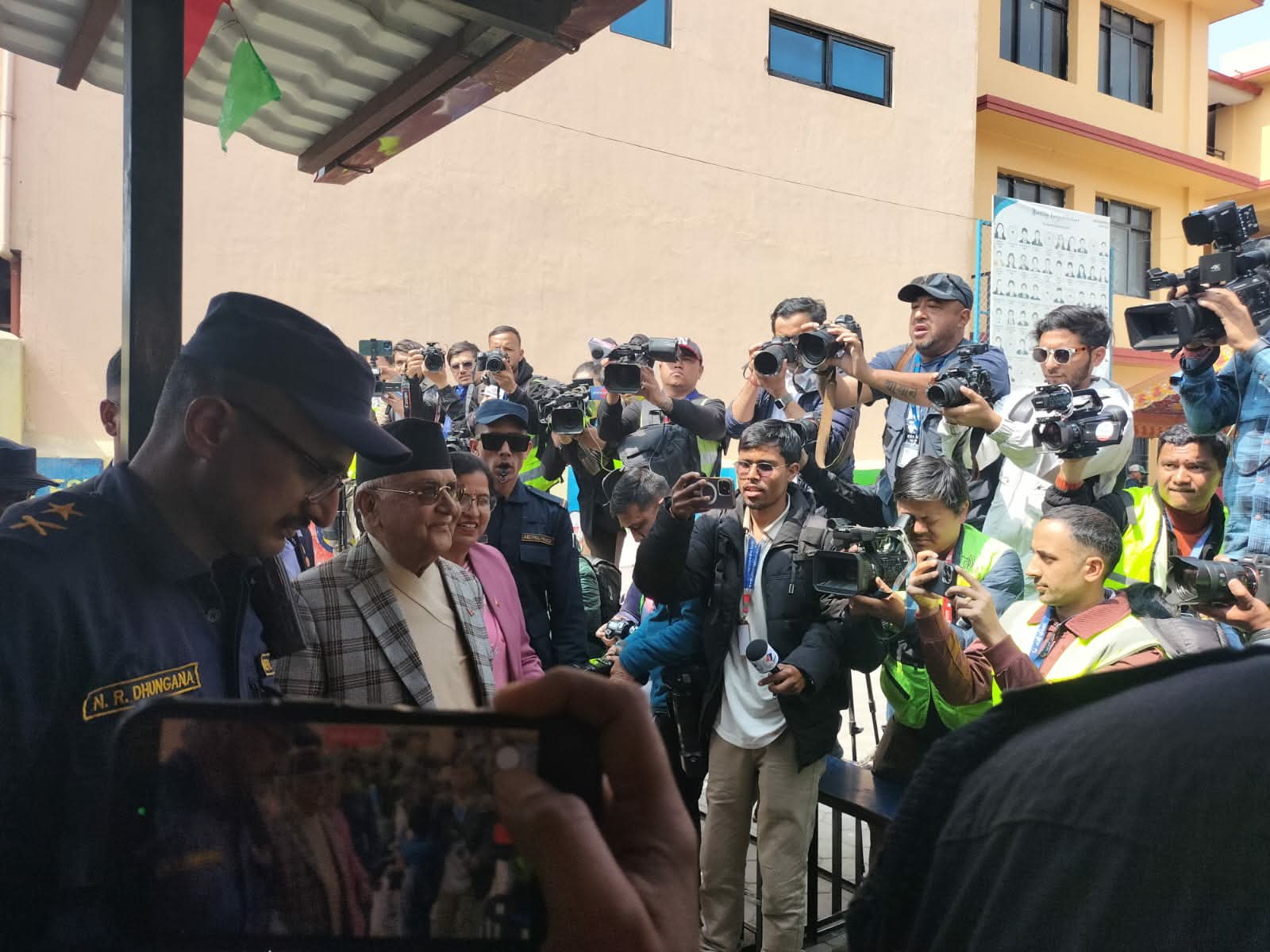 मुख्य समाचार राजनीति अध्यक्ष ओलीले गरे मतदान सत्याग्रहअनलाइन/काठमाडौं न्युज - संवाददाता २०८२ फाल्गुन २१, बिहीबार भक्तपुर । नेकपा एमालेका अध्यक्ष केपी शर्मा ओलीले मतदान गरेका छन् । भक्तपुरको सूर्यबिनायक नगरपालिका २ बालकोटस्थित महेन्द्र शान्ति विद्यालय मतदान केन्द्रबाट ओलीले मतदान गरेका हुन् । ओली झापा ५ बाट उम्मेदवार छन् । सेयर गर्नुहोस्