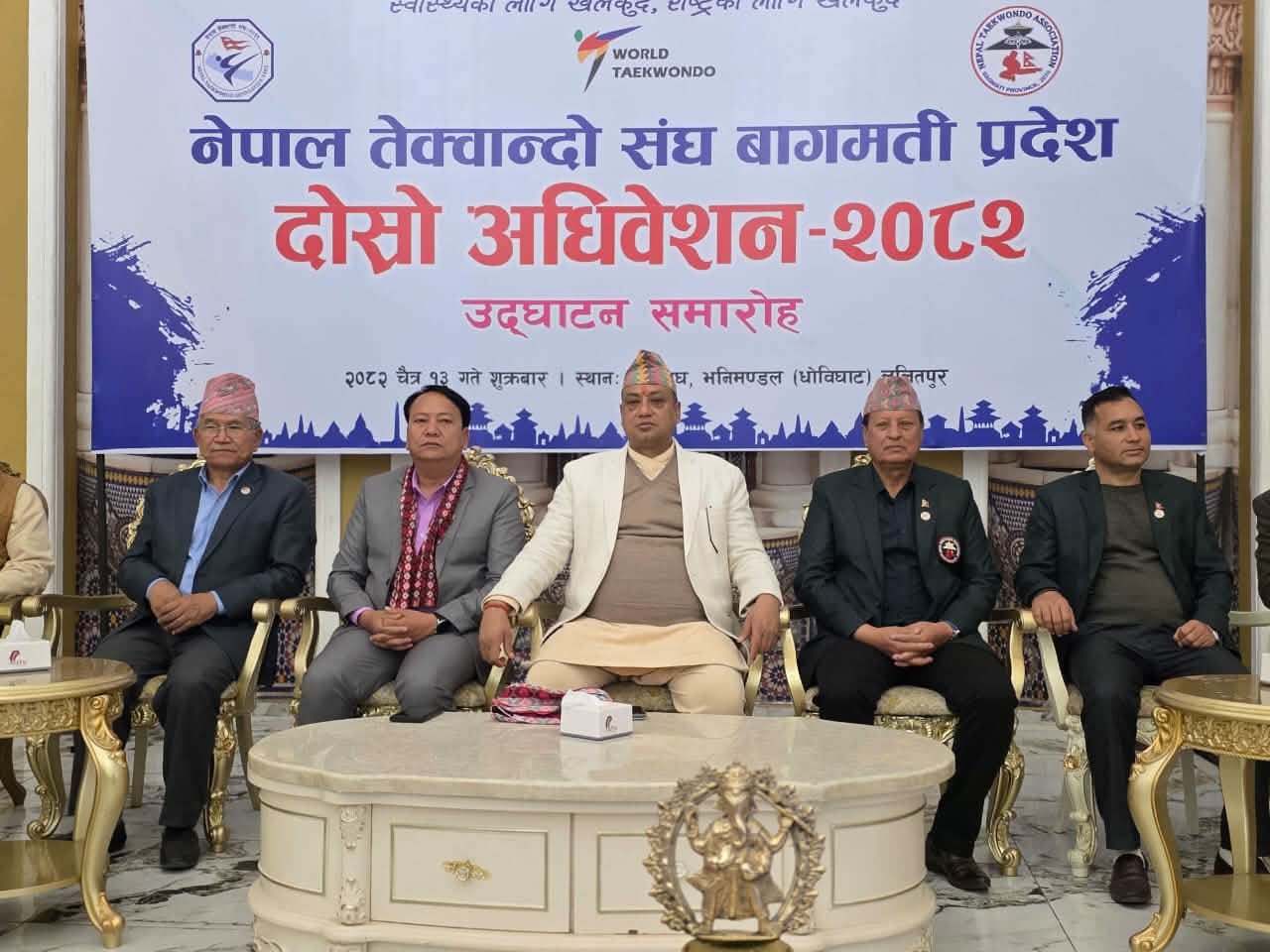 काठमाडौं । नेपाल तेक्वान्दो संघ बागमती प्रदेशको दोस्रो महाधिवेशन–२०८२ को उद्घाटन समारोहलाई सम्बोधन गर्दै बागमती प्रदेश सरकारका माननीय मुख्यमन्त्री एवं नेपाली कांग्रेस बागमती प्रदेश सभापति इन्द्रबहादुर बानियाँले खेलकुदलाई स्वस्थ, अनुशासित र सक्षम समाज निर्माणको आधारस्तम्भ भएको बताएका छन्। मुख्यमन्त्री बानियाँले खेलकुदले युवालाई अनुशासन, आत्मविश्वास, नेतृत्व क्षमता र राष्ट्रप्रतिको समर्पणको भावना विकास गराउने उल्लेख गरे। उनले तेक्वान्दो जस्तो मार्शल आर्ट खेलले शारीरिक तन्दुरुस्ती मात्र होइन, मानसिक दृढता र नैतिक अनुशासन पनि सिकाउने भएकाले यसको महत्व अझ विशेष रहेको बताए। मुख्यमन्त्री बानियाँले बागमती प्रदेश सरकारले खेलकुद क्षेत्रको समग्र विकास, खेल पूर्वाधार विस्तार, खेलाडीको क्षमता अभिवृद्धि तथा प्रतिभावान खेलाडीको प्रोत्साहनमा निरन्तर प्राथमिकता दिँदै आएको स्पष्ट पारे। उनले प्रदेशका विभिन्न जिल्लामा खेलकुद गतिविधिलाई संस्थागत र व्यवस्थित बनाउन सरकार प्रतिबद्ध रहेको बताउँदै खेलकुद संघसंस्थासँग सहकार्य गर्दै अघि बढ्ने धारणा राखे। उनले तेक्वान्दो खेलको विकासमा नेपाल तेक्वान्दो संघ बागमती प्रदेशले पुर्याउँदै आएको योगदानको प्रशंसा गर्दै दोस्रो महाधिवेशनले संगठनलाई अझ सुदृढ, एकताबद्ध र क्रियाशील बनाउने विश्वास व्यक्त गरे। साथै, खेलकुदमार्फत प्रदेश तथा राष्ट्रको गौरव बढाउन खेलाडी, प्रशिक्षक र खेलकुदकर्मीहरूको भूमिका महत्वपूर्ण रहेको उल्लेख गर्दै उनले सबैलाई समन्वय र सहकार्यसहित अगाडि बढ्न आग्रह गरे। उद्घाटन समारोहमा मुख्यमन्त्री बानियाँले उत्कृष्ट खेलाडीहरूलाई बधाई दिँदै प्रमाणपत्र हस्तान्तरण गरेका थिए । सो अवसरमा उनले खेलाडीहरूको मेहनत, अनुशासन र उपलब्धिले समग्र प्रदेशकै प्रतिष्ठा उचो बनाएको उल्लेख गर्दै आगामी दिनमा अझ उच्च उपलब्धि हासिल गर्न शुभकामना व्यक्त गरे। उनले प्रतिभाशाली खेलाडीहरूको सम्मान र प्रोत्साहनले खेल क्षेत्रमा नयाँ पुस्तालाई प्रेरणा मिल्ने विश्वास व्यक्त गरे। कार्यक्रममा बागमती प्रदेशका स्वास्थ्य मन्त्री किरण थापा विशिष्ट अतिथिका रूपमा सहभागी भएका थिए भने ललितपुर महानगरपालिकाका मेयर चिरीबाबु महर्जन अतिथिका रूपमा उपस्थित थिए।
