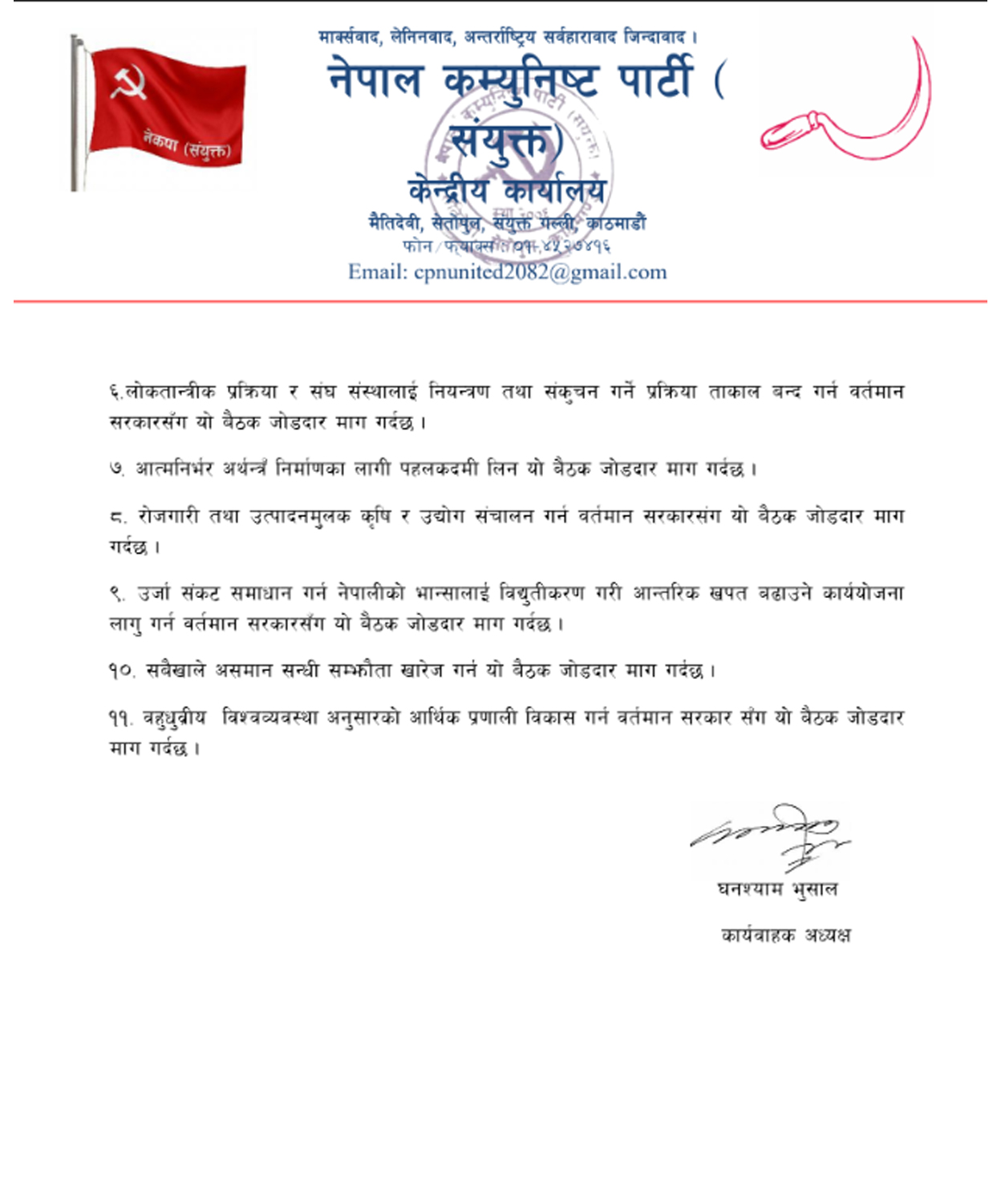 गौरीबहादुर कार्की आयोगको प्रतिवेदन अपूर्ण र पूर्वाग्रही – नेकपा संयुक्त