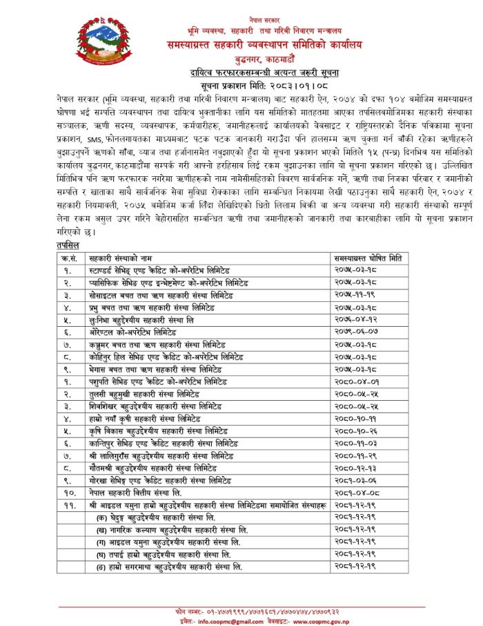 समस्याग्रस्त सहकारीको ऋण तिर्न १५ दिने सूचना, नतिर्नेको सार्वजनिक सेवा,सुविधा रोकिने